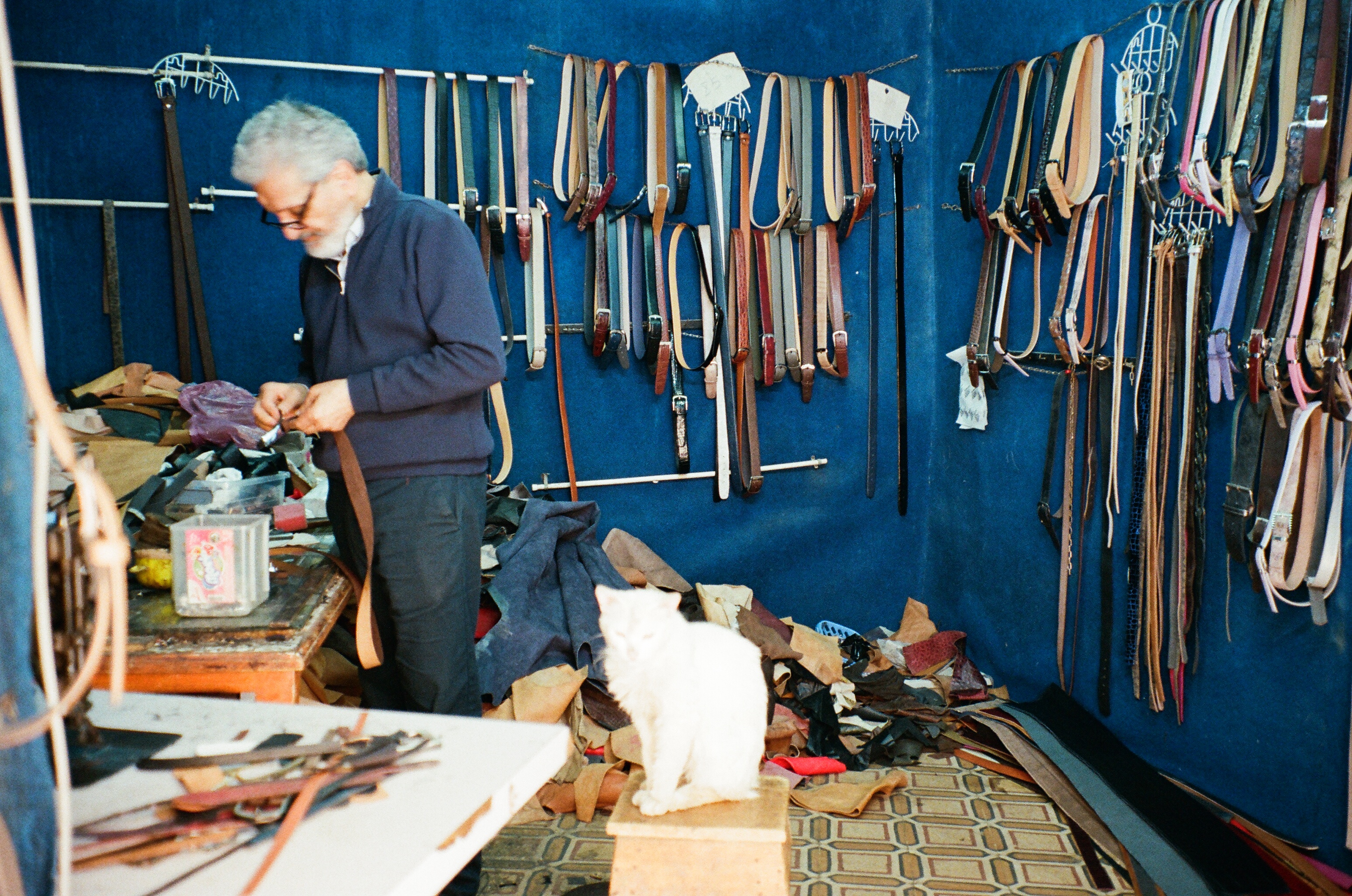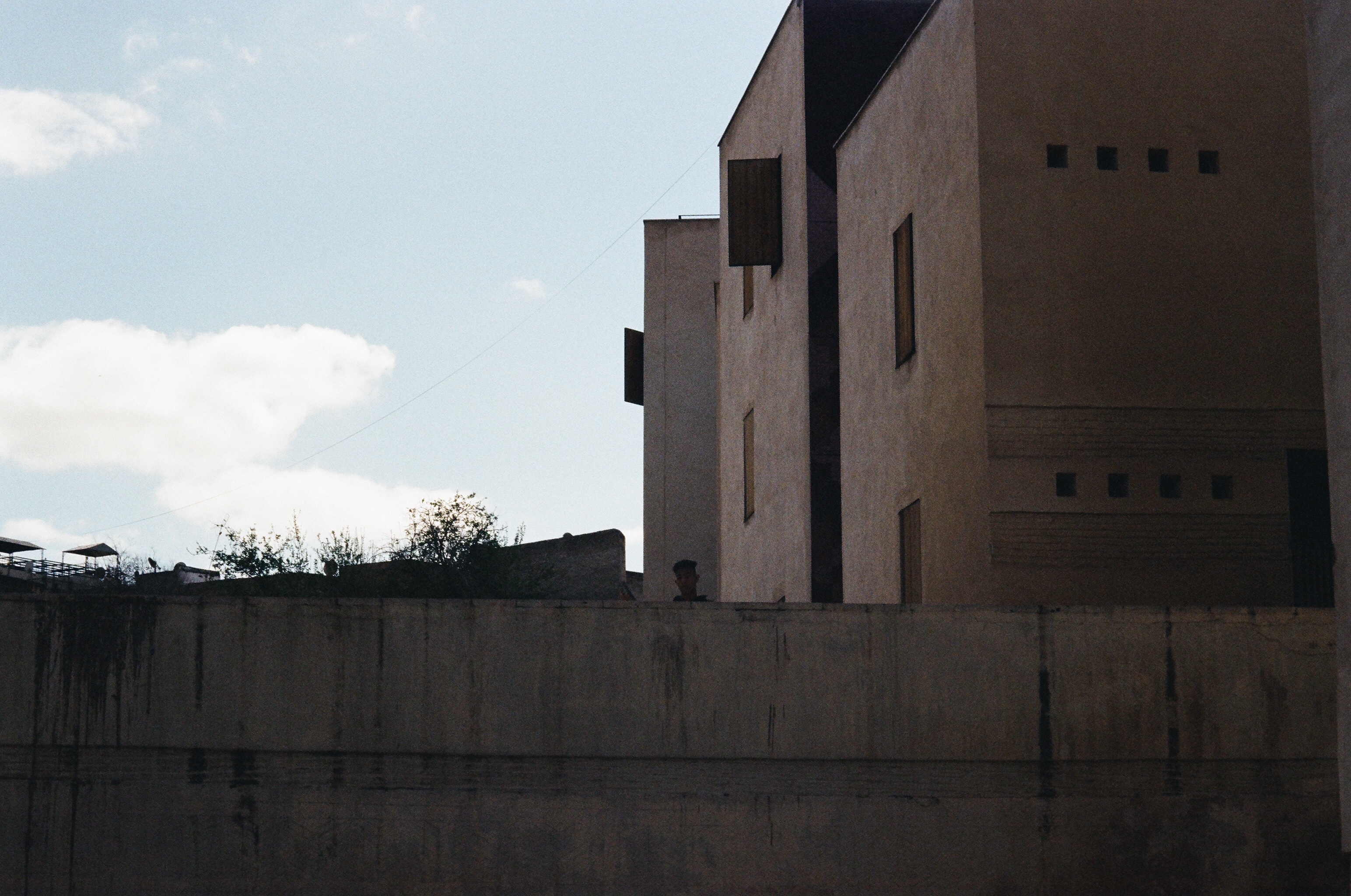 그리고는 잊고 있던 뒤를 돌아보며 가이드 친구를 바라보니, 지루함에 스마트폰을 들여다보고 집중하고 있다. 이제 다 봤으니 내려가자는 말에, 이제는 저곳 테너리에서 만든 제품들을 구경할 수 있는 샵들이 내려가면서 있다고 한다. 아무래도 배낭여행자인만큼 가지고 다닐 수 있는 짐이 한정된 탓에 무언가 사주고 싶어도 사기가 힘들다. 첫 매장은 모두 큼직한 제품밖에 없다. 한층씩 내려가며 매장을 둘러보다보니, 언젠가 하나 사야지 했던 벨트가 보인다. 생각보다 괜찮아보였지만, 이염에 대한 걱정이 엄청 컸다. 그리고.테너리에서 나는 냄새가 여전히 각각의 가죽에서 난다. 그래도 싼 값이면 한번 도전해볼만 해보였다. 그래서 어느정도 가격 흥정을 끝내고 테너리 투어를 마쳤다. 테너리를 내려와 염색에 사용하는 물을 길어다 쓰는 하천을 거닐고 올라가다보니 제법 재미있는 풍경이 많다. 일부 어린아이들은 카메라를 든 내게 사진을 찍어달라고 하기도 하고, 어린 아이들이 축구를 하기도 한다. 나는 그러다 필름를 바꾸기 위해서 잠깐 자리에 앉아 주변을 둘러보고 볕에 달궈진 정수릴 잠시나마 식히고 자리를 옮긴다.
