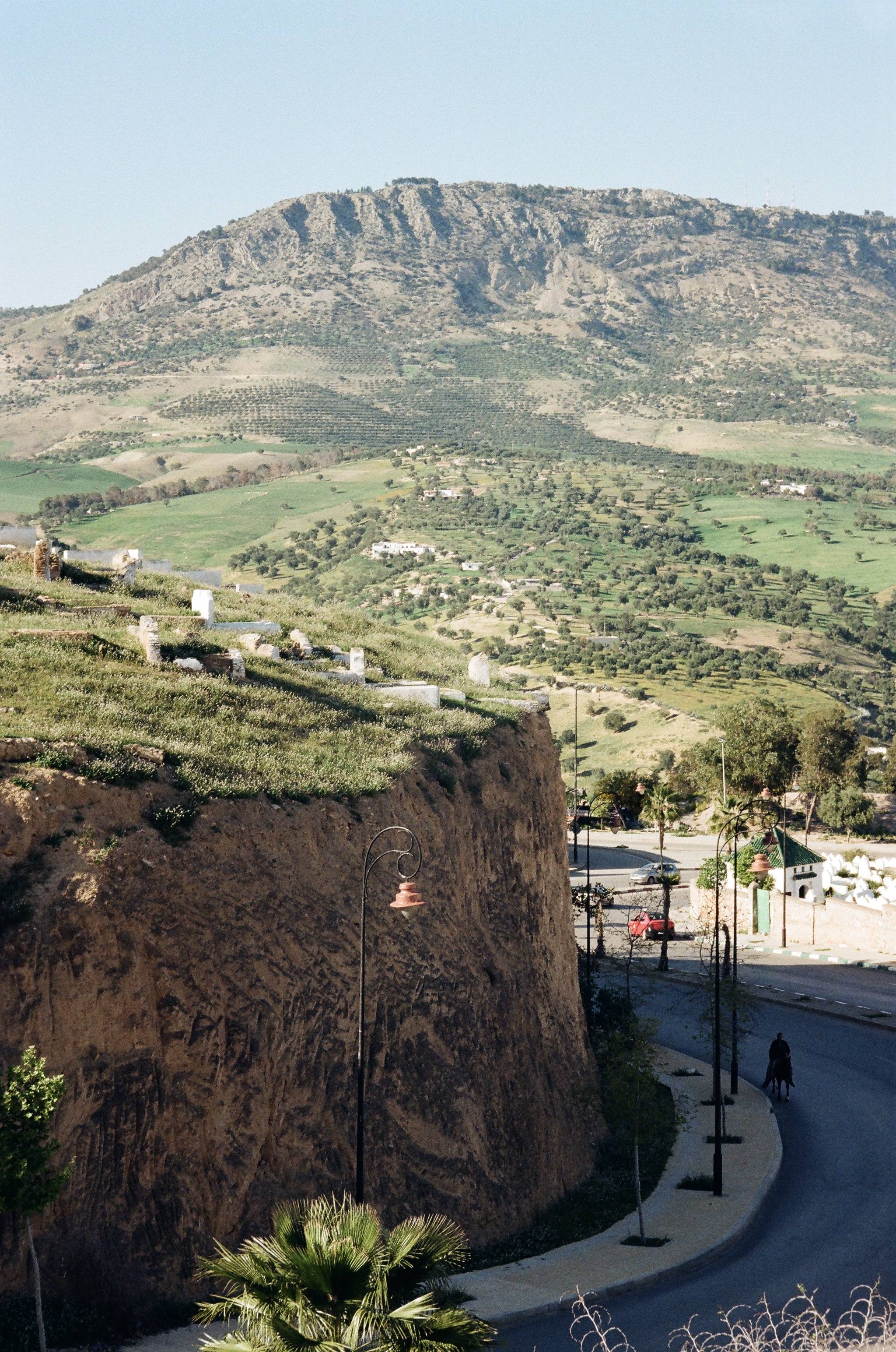 그 구경길에 끝즈음 사방이 둘러쌓여 잘 보이지 않던 하늘이 보이기 시작한다. 그리고 커다란 아치모양의 문을 넘자 옆으로 무덤들이 보인다. 무덤이긴하지만 그 묘비의 비석들이 뽀얗고 관리가 잘 된데다, 높은 언덕에 햇살을 바라보고 있어서일까 화사함이 더 크다. 무덤 사이사이의 수많은 그리움이 담긴 발자국을 따라서 묘비와 뒤로 난 풍경을 같이 번갈아보며 더 높은 전망대로 올라간다. 언덕과 언덕 사이 골짜기로 난 구불구불한 도로를 내려다 보고 있으니, 이곳 북아프리카의 느낌보다는 유럽 어딘가가 생각나는 또 다른 이국적인 풍경을 마주친다.