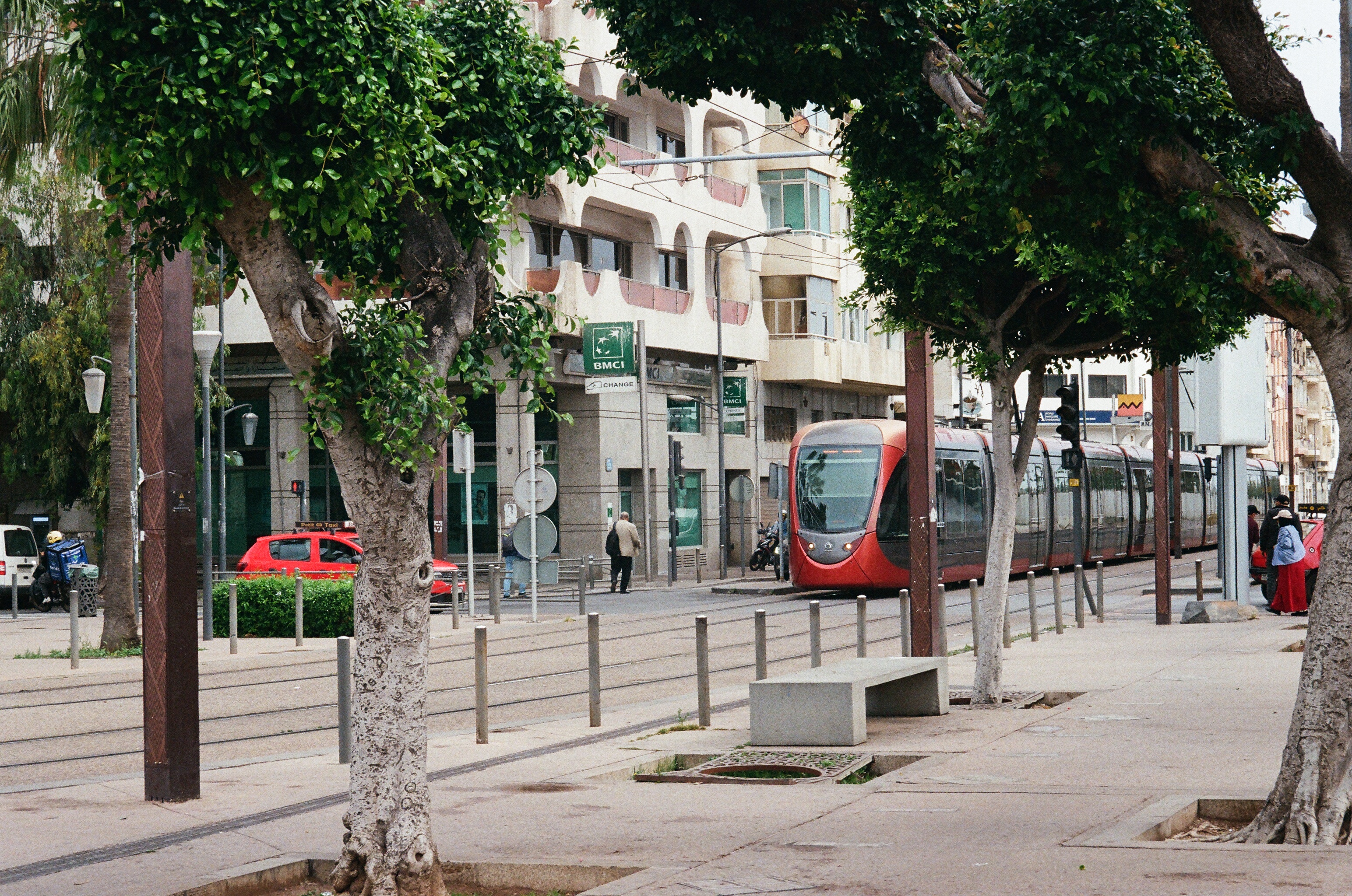 아무튼 그렇게 탄 트램에서는 홀로 우뚝 서 주위를 두리번 거리며 카메라를 들었다 내리기를 반복하는 나를 모두가 바라보고 있다. 인도에서처럼은 아니지만 힐끔힐끔 눈이 자꾸 마주친다. 어떤 젊은 여성 무리들은 한국인임을 알아채고는 신기함을 표하다가 트램을 내린 뒤에 나를 향해 한국어로 인사를 건넨다. 트램에 홀로 남은 나는 괜히 머쓱해져 웃다가 금새 표정을 고친다. 아마 한국 드라마나 가수들에게 심취한 이들이겠지. 덕분에 아무것도 아닌 동양인 남자인 나도 먼 타국 아프리카 땅에서 환대받는 대상이 되기도 하구나 싶더라. 아무튼 그렇게 트램을 내려 버스를 갈아타기 위해 길을 걸으며 주변 풍경을 보자니 카사블랑카만의 낭만이 느껴진다. 실제로 구글맵으로 걸어서 15분 정도면 충분히 갈 수 있는 거리다. 그래서 버스 타기를 포기하고 걷기 시작한다. 목에 건 카메라가 분주해진다.